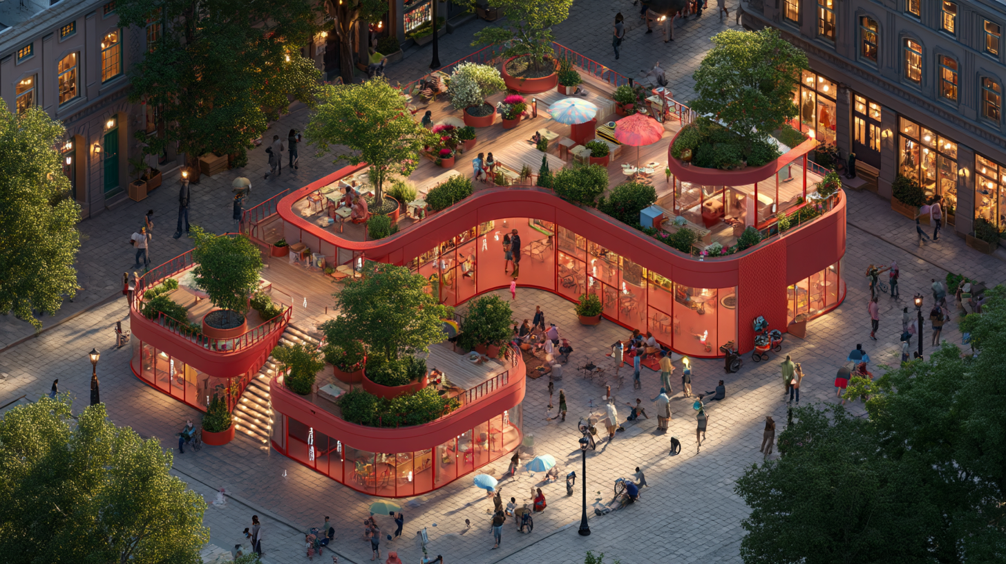 Through modular aggregation, the system creates interconnected environments that function as urban social hubs: spaces for retail, dining, and interaction. Material selections enhance visual rhythm, flexibility, and identity across different module compositions.
